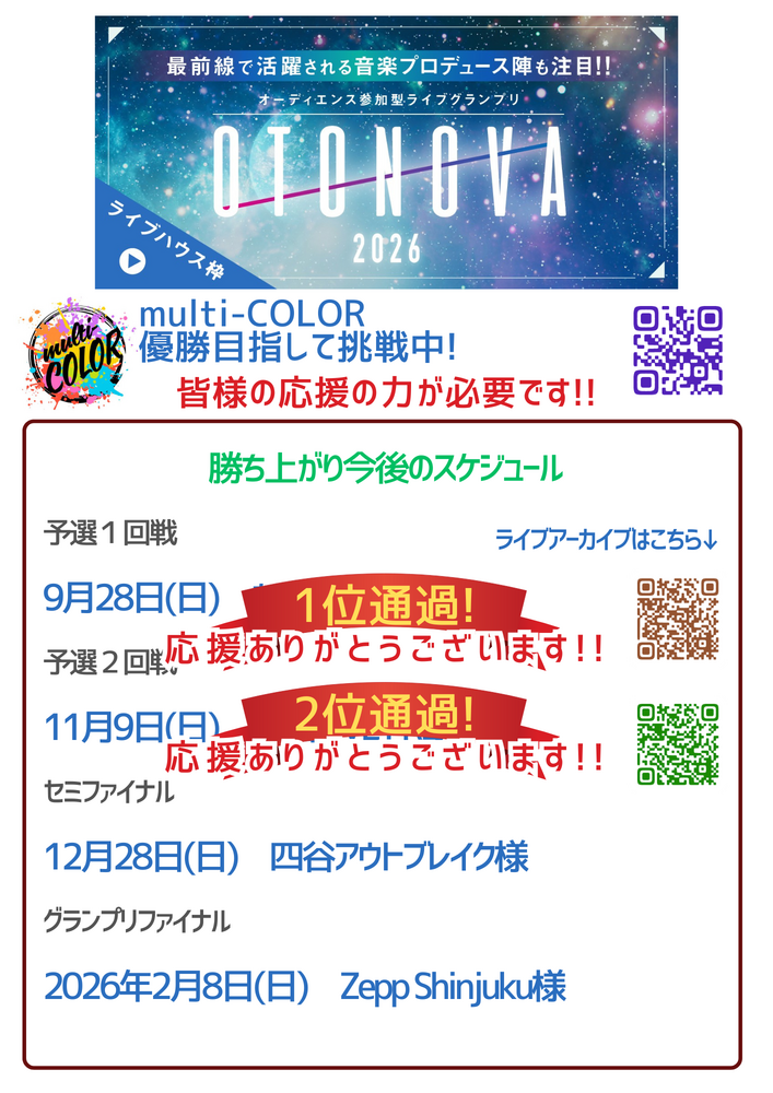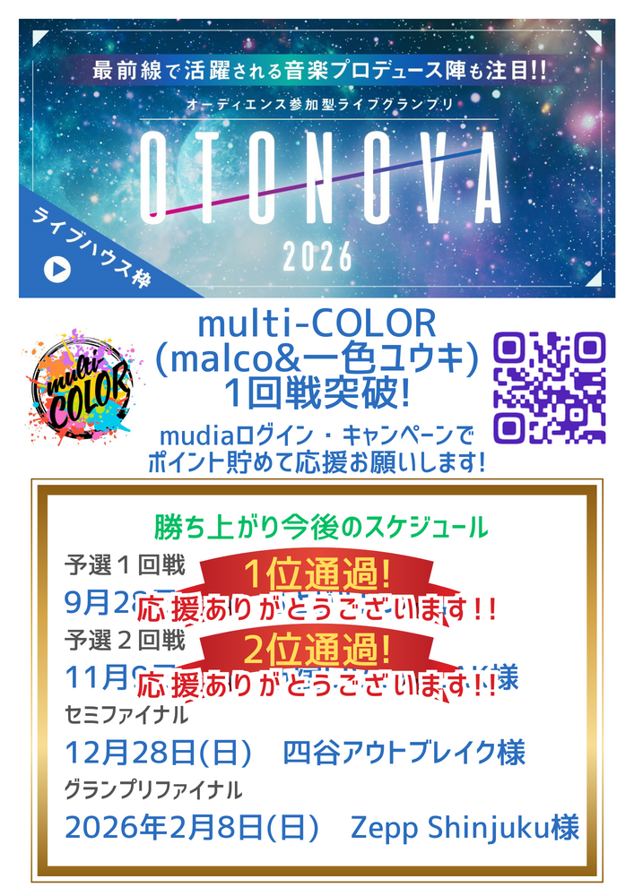 また、OTONOVAセミファイナルまでは温存していただいたポイントもあるかと思いますが、ここは出し惜しみせずに全力で応援をお願いします。