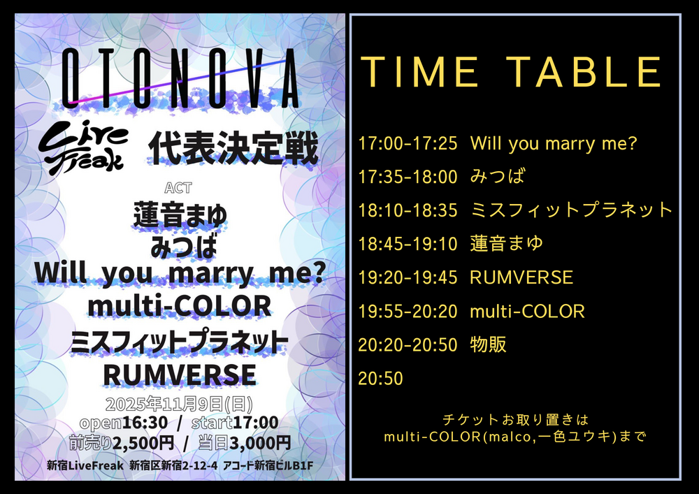 チケットお取り置きはmulti-COLOR(malco,一色ユウキ)に直接お声がけください。